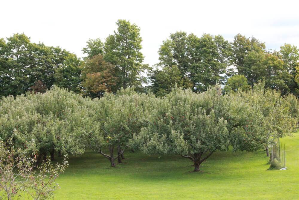 The main variety of apples grown here are Sandow apples, which are a scab-free variety, making them a good variety to produce organically. The Sandow was introduced in 1935, but was never very widely distributed, being popular only in New Brunswick and Quebec. Sandow apples are a favourite for desserts and cooking! There are around 125 Sandow trees on their property.