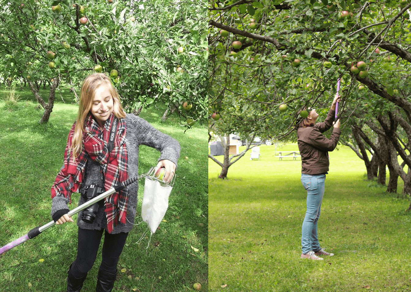 Once we finished our tour of the property, we decided to go pick some apples. We lucked out, since this year there was a really good crop of big apples! Most of the larger apples were higher up in the trees – the Chaplin’s have several long poles we used as a device to help reach the apples at the top. Many of the lower hanging apples are eaten by deer that roam into the orchard but some still remain for children to pick!