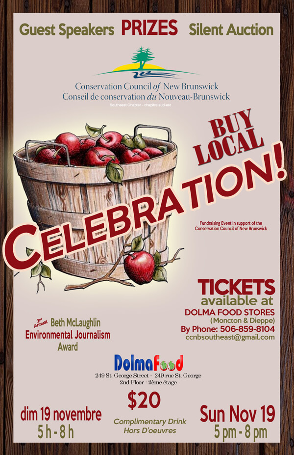 Everything tastes better with friends, family and fresh local ingredients! That’s why we’re inviting you to join us for the Conservation Council of New Brunswick Southeast Chapter’s Buy Local Celebration, coming up on Sunday, Nov. 19.