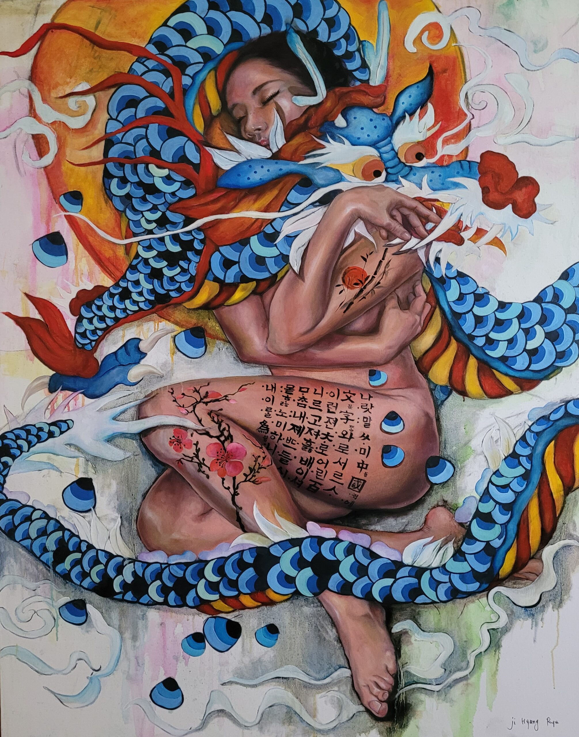 Ji Hyang Ryu is a self-taught painter living and practicing in Riverview NB. Having immigrated to Canada from South Korea, her work infuses both Canadian and Korean cultures in style and technique. Ji is an emerging artist who has recently made the shift to a full-time career in the arts. The dedication towards her arts practice and the personal story she tells in her work has resulted in great successes in her career over the last year.
