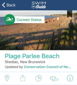 Swim Guide was created by Swim Drink Fish Canada (previously a project of the Lake Ontario Waterkeeper), a non-profit organization based in Toronto, with the goal to ensure that 100 per cent of Canadians have access to basic data about the health of their watersheds. The group just released the first-ever Canada Beach Report, which was created in collaboration with Waterkeepers across Canada, including the Conservation Council, Fundy Baykeeper, and Petitcodiac Watershed Alliance.