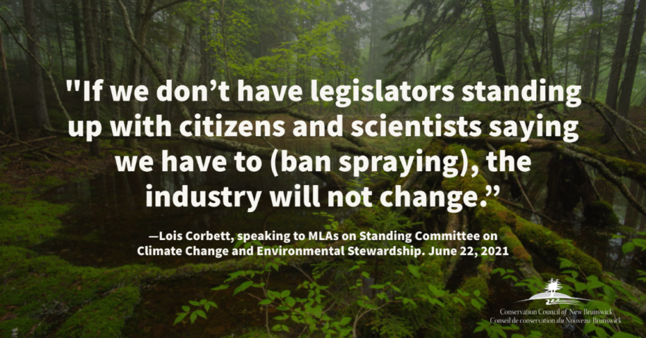 Late last month was an important moment for our forest. MLAs heard from experts, citizens and scientists about the risks of glyphosate spraying on clearcuts and how this and other forestry practices in New Brunswick are threatening many of the spaces and species New Brunswickers love. If you missed any coverage of the week-long standing committee hearings on glyphosate use, don’t worry. We’ve got a round-up for you, along with an opportunity for you to have your say on this old fashioned and unnecessary practice.