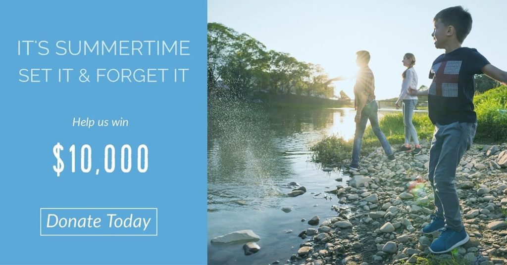 Summer is such a wonderful time in New Brunswick– warm weather and longer days mean more afternoons drifting down the St. John River with friends, paddling up the Musquash with your kids, weekends at your favorite beach, backyard BBQs and much more. It’s easy to see why Canadians sometimes forget to support their favorite causes this time of year. But we’ve got a solution that will let you do both: Set it and Forget it, then go out and enjoy your summer! We’re participating in CanadaHelps’ Great Canadian Giving Challenge. Starting today and for the month of June, each donation of $3 or more enters the Conservation Council in a draw to win an additional $10,000 donation. Help us continue our work to clean up Parlee Beach, grow the green economy in N.B., improve our forestry practices, and more — click the icon below to donate today!