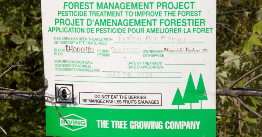 Des entreprises forestières pulvérisent des herbicides sur des zones de coupes à blanc pour éradiquer les feuillus et la végétation qui font concurrence aux épinettes, aux sapins et aux pins qu’elles cultivent dans les plantations.