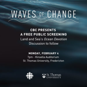 Our Fundy Baykeeper, Matt Abbott, will talk about the impact plastic pollution is having on our beautiful Bay of Fundy as a panelist at CBC Land and Sea’s Waves of Change public screening event and discussion on Monday, Feb. 4 in Fredericton.