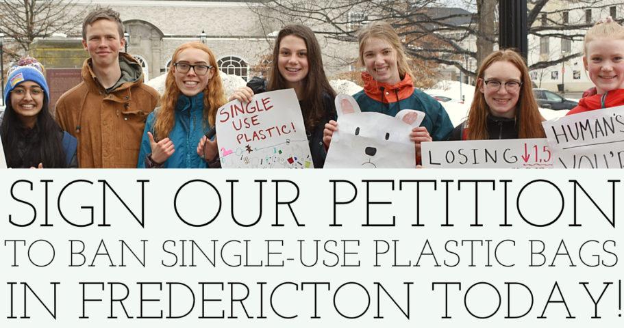 You can help add pressure by signing our petition for the Fredericton City Council to ban plastic shopping bags. Nearly 90 per cent of plastic in Canada are not recycled but rather pollutes our lakes, parks, oceans, landfills, or is incinerated. It’s time to move away from plastic bags toward smart, sustainable packaging solutions.